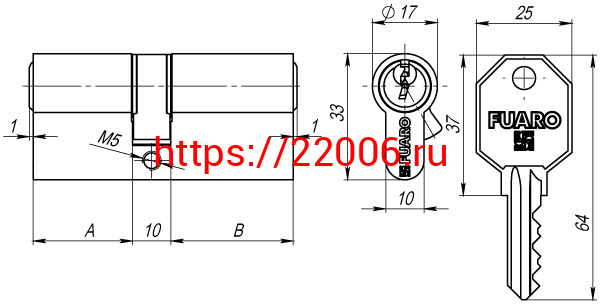 - Цилиндровый Fuaro (Фуаро) механизм (100 CA/80) 1000CAKey80(35+10+35) CP хром 5Key в Новосибирске недорого