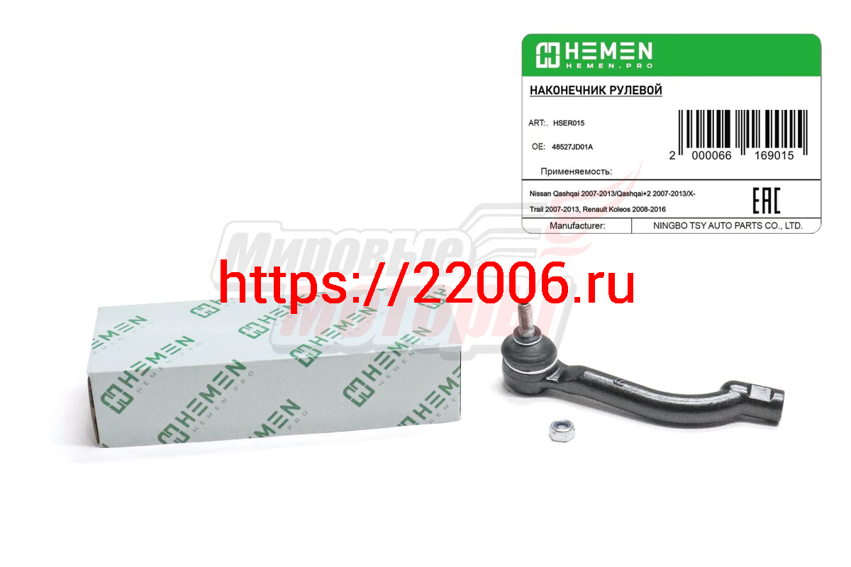 - Наконечник рулевой правый Nissan Qashqai 07-, X-Trail 07-, Renault Koleos 08- (HSER015) в Новосибирске недорого