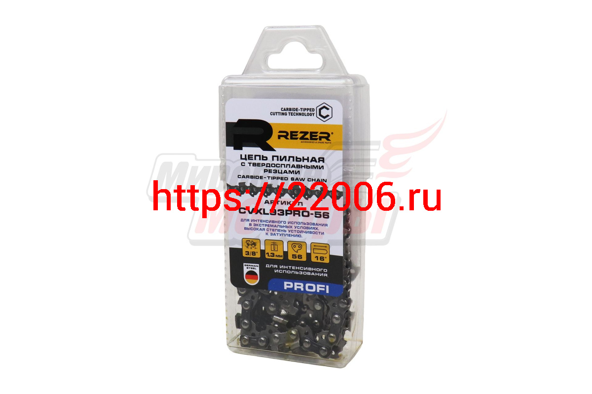 - Цепь "REZER" 16" 3/8-1,3-56z С ПОБЕДИТОВЫМИ НАПАЙКАМИ (Partner) в Новосибирске недорого
