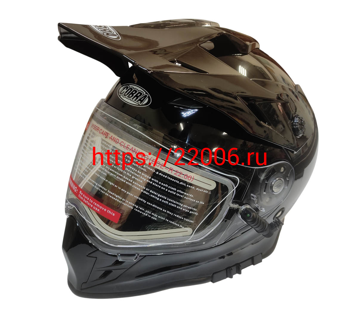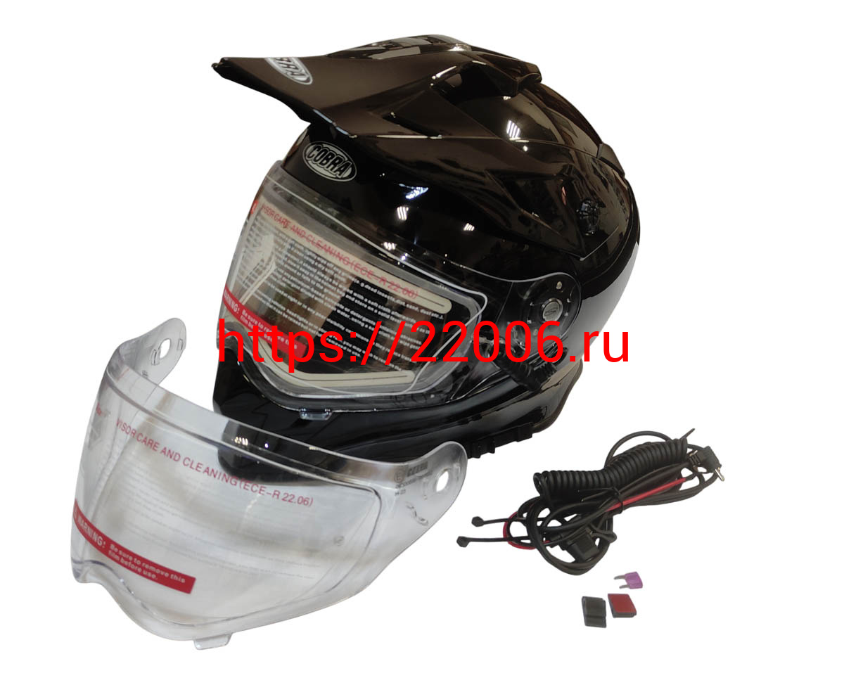 - Шлем кроссовый со стеклом (туринг) СНЕГОХОДНЫЙ COBRA EC H331, черный, с ПОДОГРЕВОМ ВИЗОРА, размер M в Новосибирске недорого