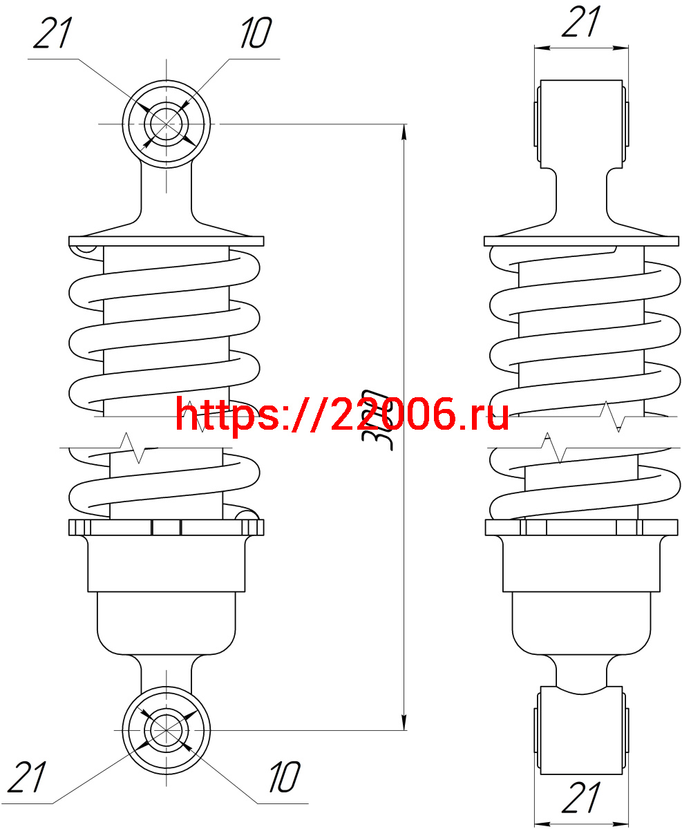 - Амортизатор перед. L-300, D1-21, d1-10, Н1-21, D2-21, d2-10, Н2-21 хром BEETLE, COGAR, DINGO в Новосибирске недорого
