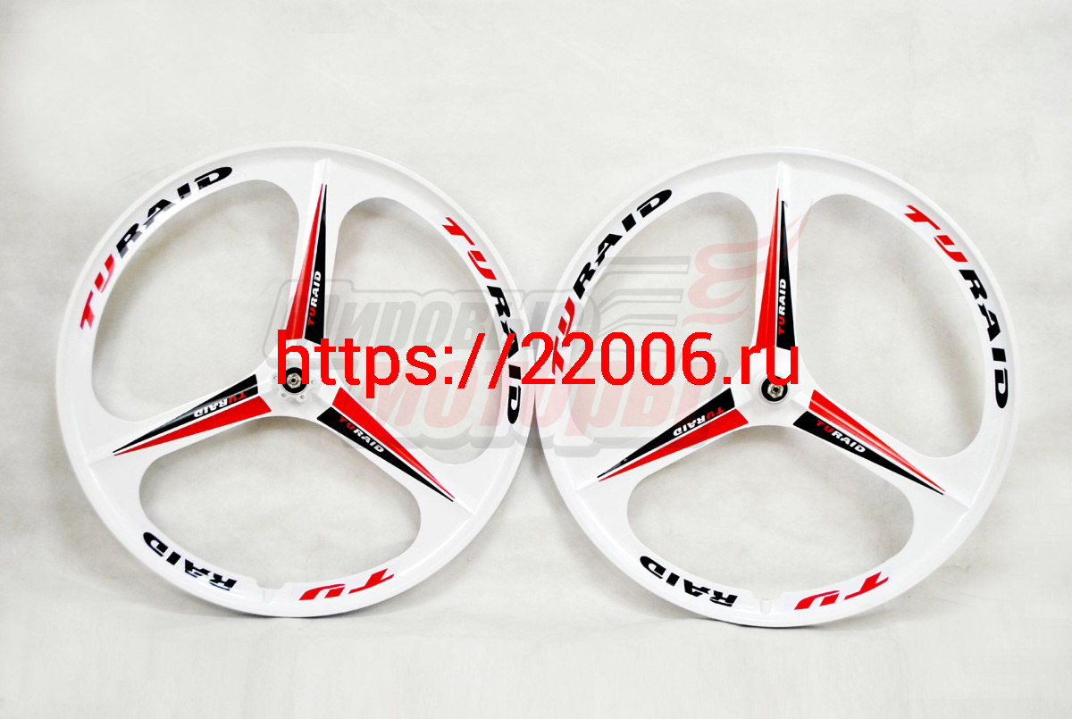 - Обода 24" ЛИТЫЕ (3 ЛУЧА) передний+задний (КОМПЛ.) под кассету, БЕЛЫЙ в Новосибирске недорого